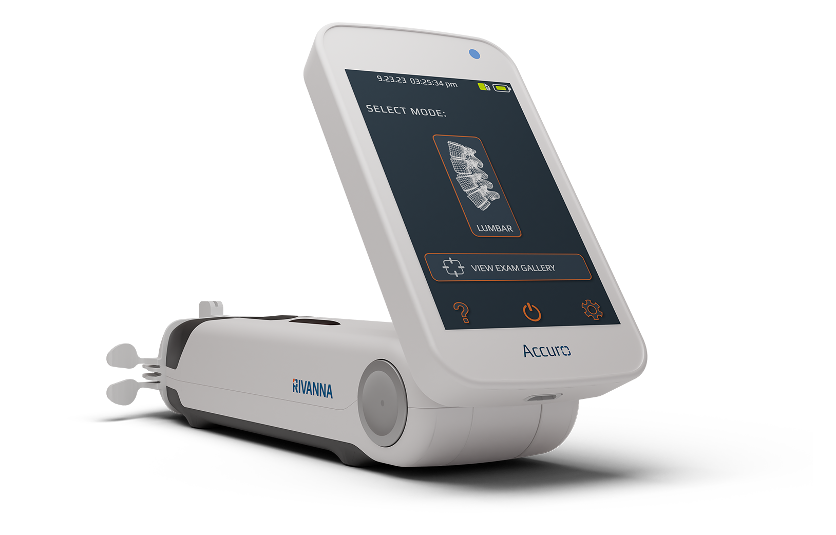 - Hold Accuro near the transducer while anchoring hand to the patient’s back with the other hand under Accuro for support.